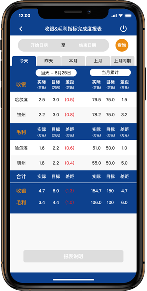 针对手机端进行优化的经营报表。扔掉电脑的束缚,手机在手,即可随时随地查看。